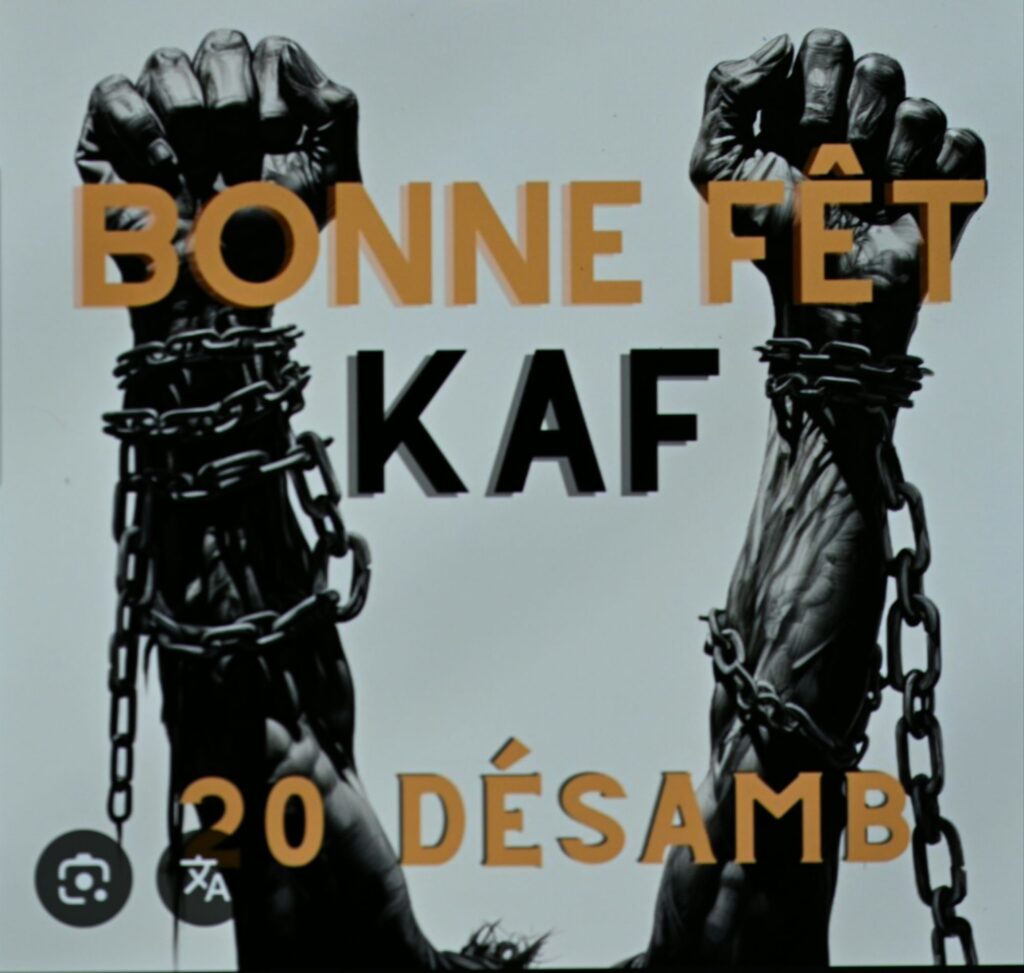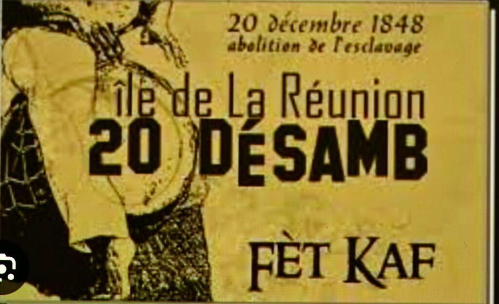 Le 20 decembre, marque la commémoration de l’abolition de l’esclavage a l’ile de la reunion974 « appelée : la fête kaf »