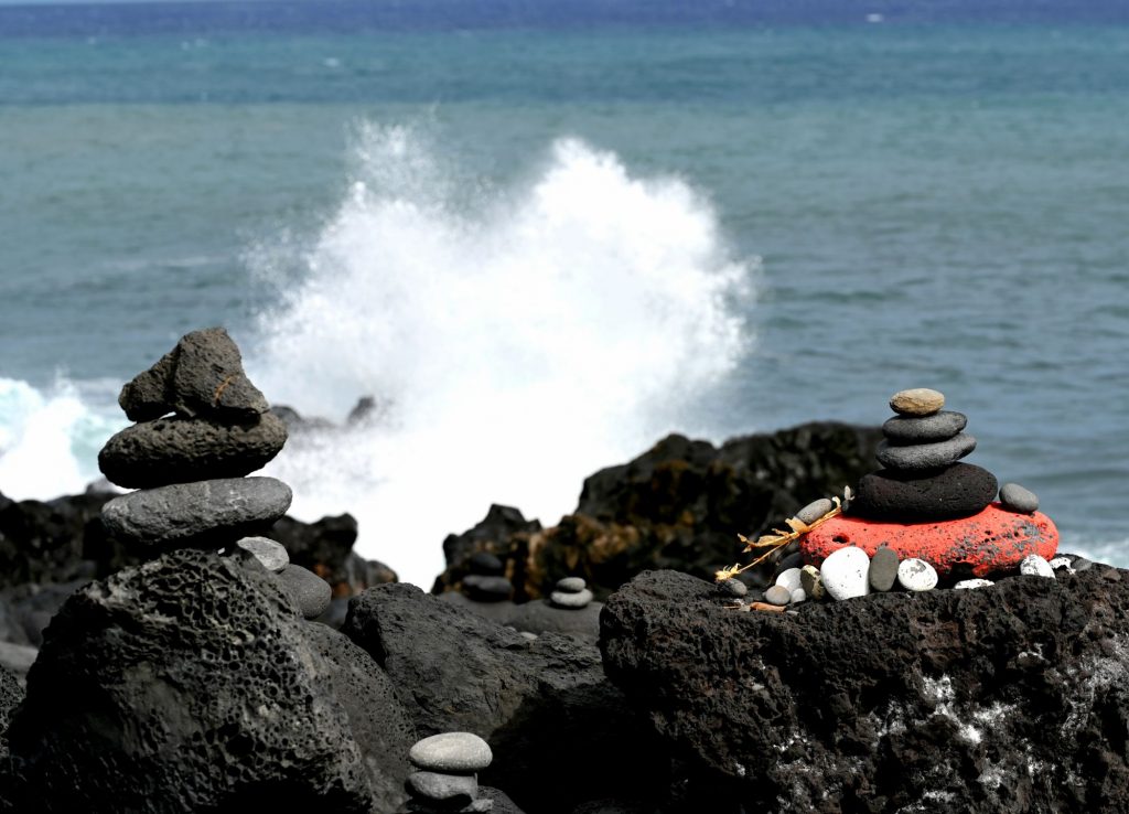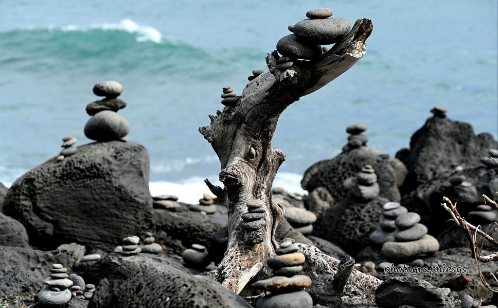 Les empilement de galets au Gouffre,à la reunion, sont des créations humaines appelées << cairns>>. Bien qu’ils puissent évoquer des traditions anciennes, leur présence sur ce site est récente exprimé plusieurs signification :